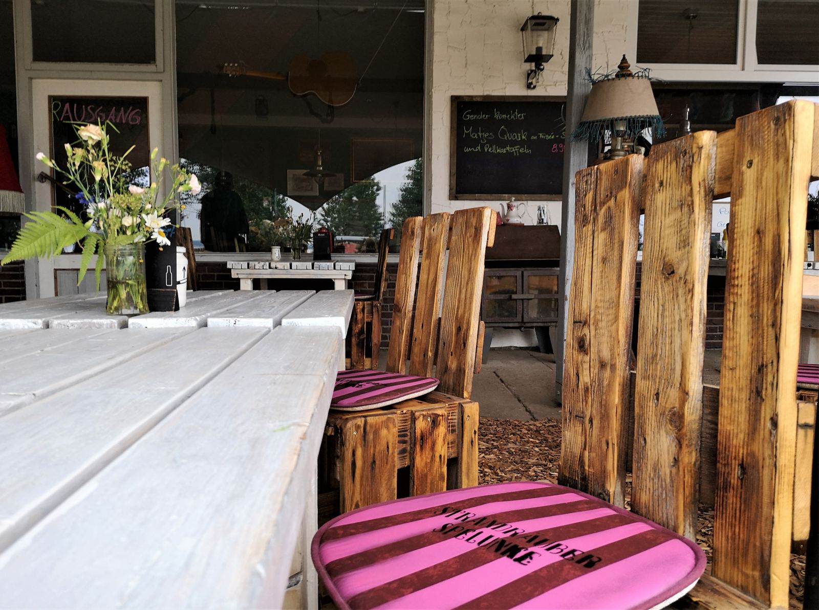 Nachdem der Campingplatz zunächst in „Cool Camping“ sowie in der Nachfolger-Ausgabe „Camping-Glück“ gefeiert wurde, muss man heute lange vorbestellen, um auf diesem plastikfreien Platz in der Eckernförder Bucht noch eine Parzelle zu ergattern. Eine echte Natur- & Style-Oase für ein hip-alternatives, urbanes Publikum. Wer keinen Platz mehr bekommen hat (so wie wir 😊), kann Camp Langholz trotzdem einen Besuch abstatten, genauer gesagt: dem Café Strandräuber auf dem Gelände des Kult-Campingplatzes. Das kleine, liebevoll hergerichtete Bistro steht auch Menschen mit Hund offen, die hier nicht campieren. Es bietet gechillte Atmosphäre und Bio-Küche. Hier kommt man schnell ins Gespräch – und schnell an den Hundestrand und den Wanderweg, der immer weiter an der Küste entlangführt.